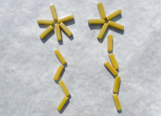 Yellow Iridescent Rectangle Glass Mosaic Tiles - 20mm Sticks - 50g - Approx 40 Bars