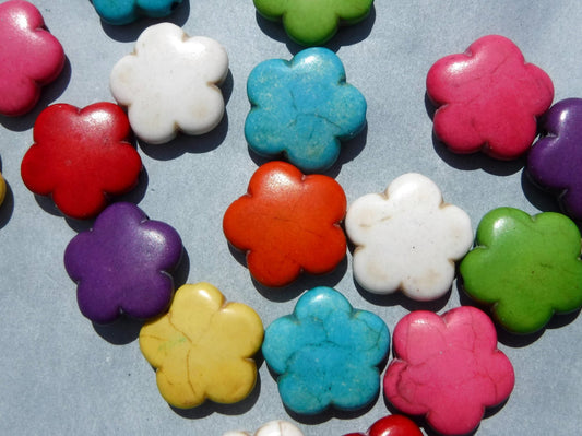 Colorful Flower Beads - 10 Large 15mm Stone Beads