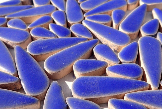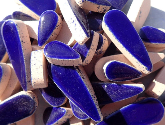 Dark Blue Teardrop Mosaic Tiles - 50g Ceramic Petals in Mix of 2 Sizes 1/2" and 3/5" in Indigo Blue