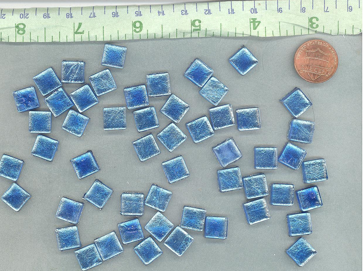 These square foil mosaic tiles are in a water blue color. They are 1cm x 1cm x 4mm. (3/8" x 3/8" x 1/6") They are made with hot molded float glass for a smooth surface and edges. The colored and textured metallic foil will be a nice addition to your mosaic project.