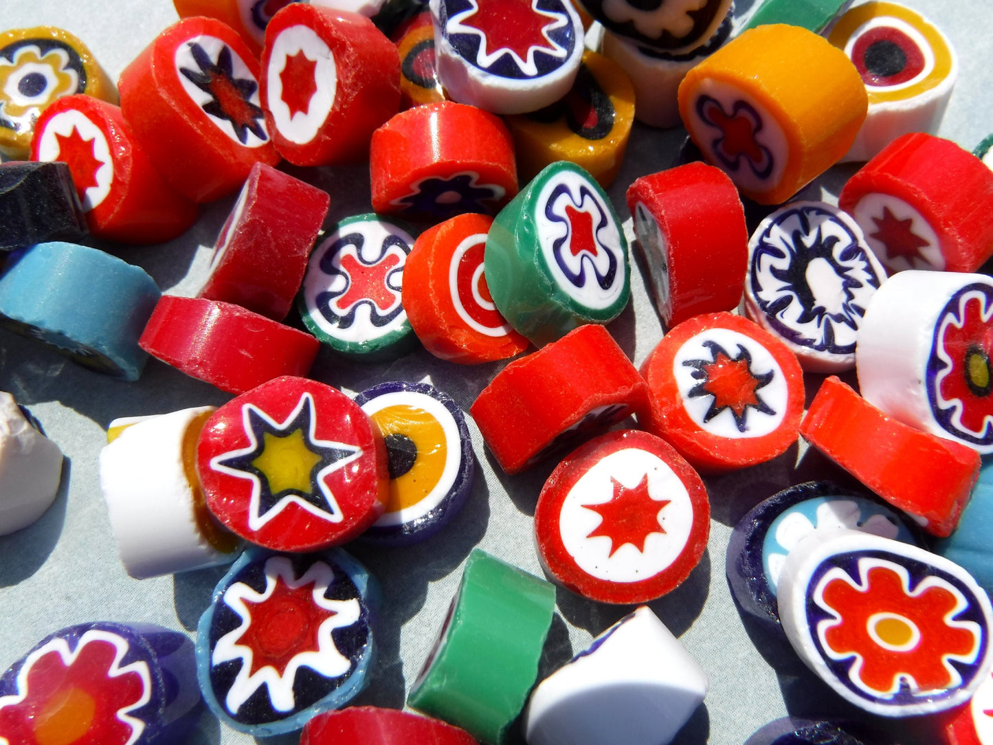 Bold Colorful Millefiori - 25 grams - Unique Mosaic Glass Tiles - Mix of Opaque Patterns