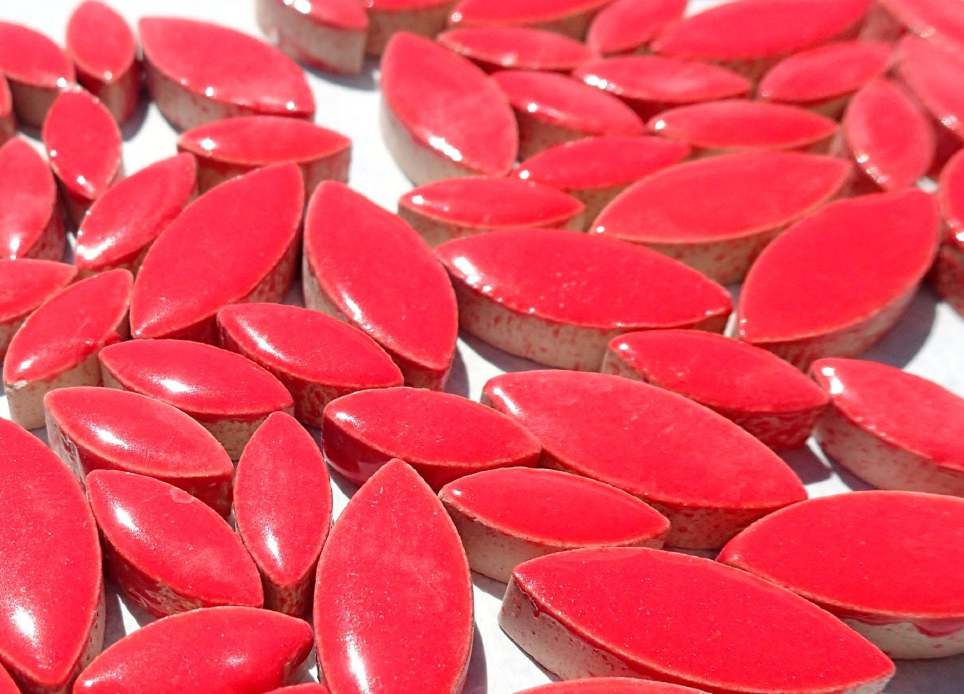 Bright Red Petals Mosaic Tiles - 50g Ceramic Leaves in 2 Sizes