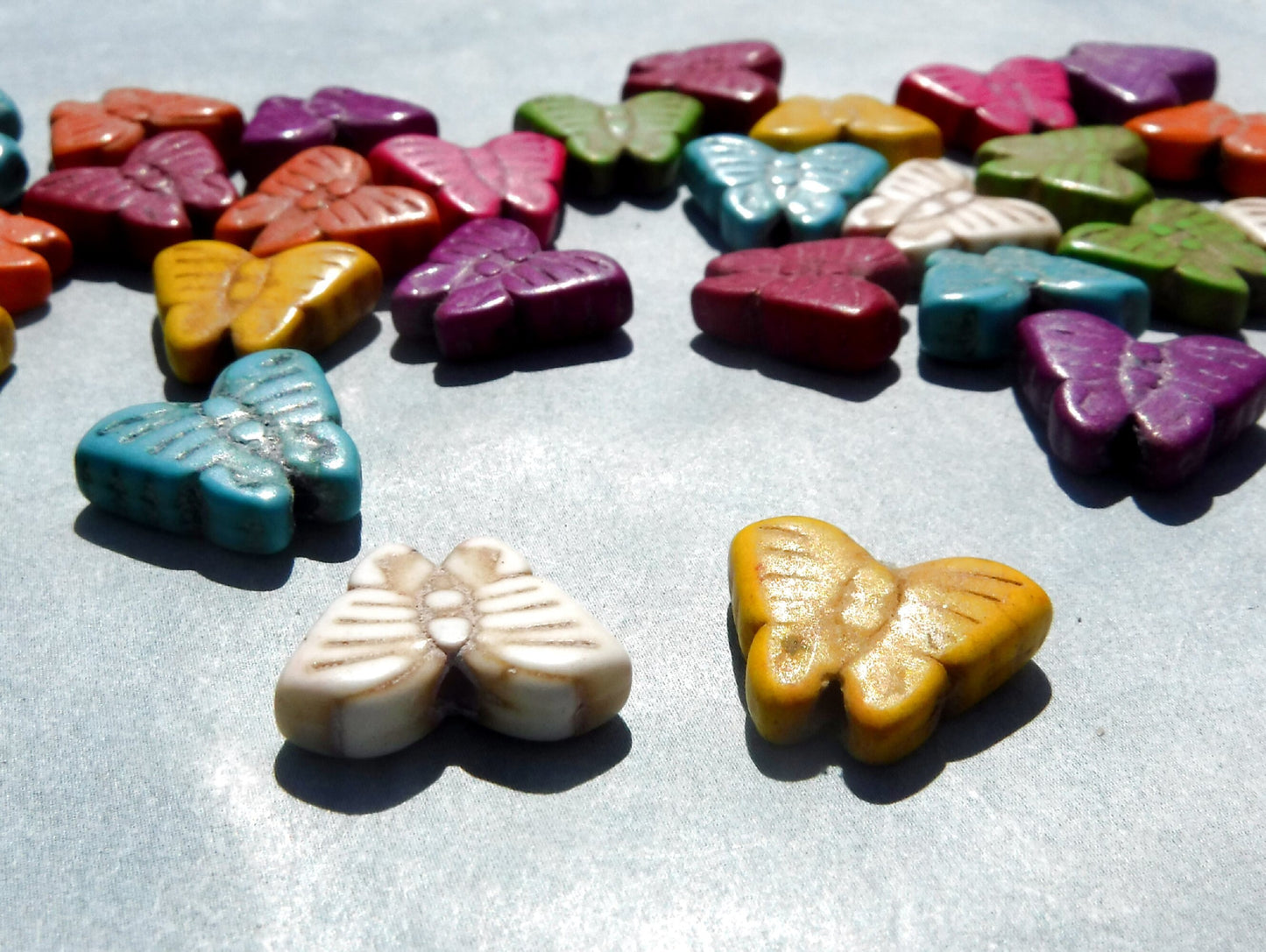 Colorful Butterfly Stone Beads - 12mmx 15mm - Choose Half Strand or Full Strand - Use for Mosaics