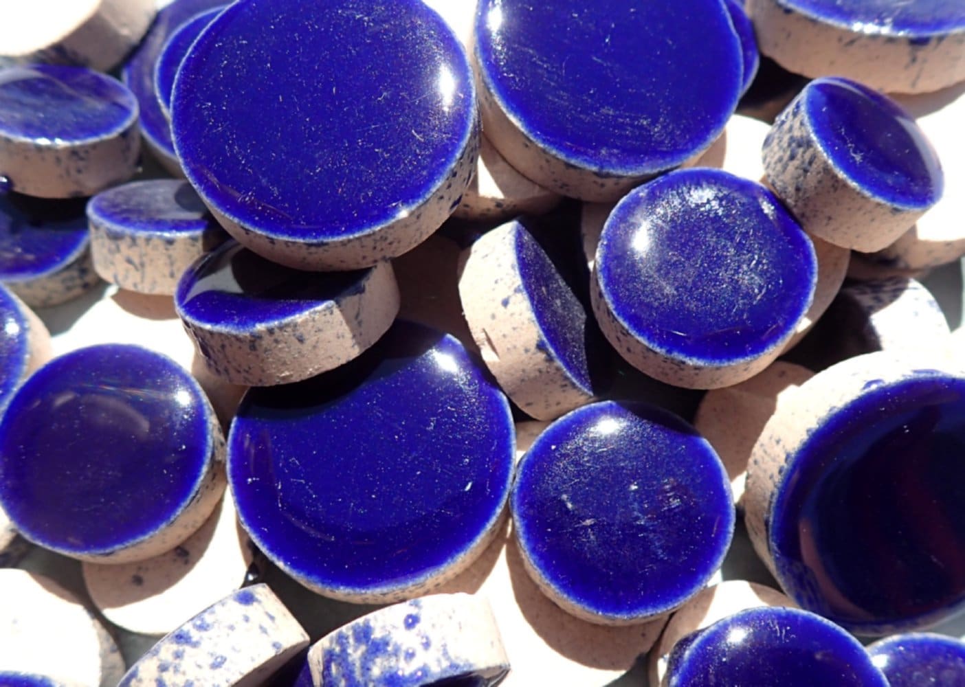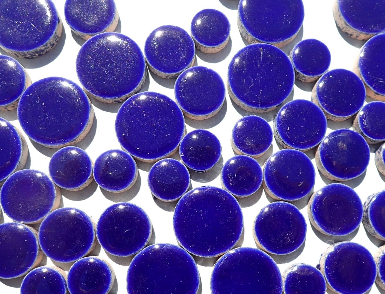 Circles add lots of personality to mosaics. The mix of these sizes also makes fun patterns. These circles are in a deep indigo blue.