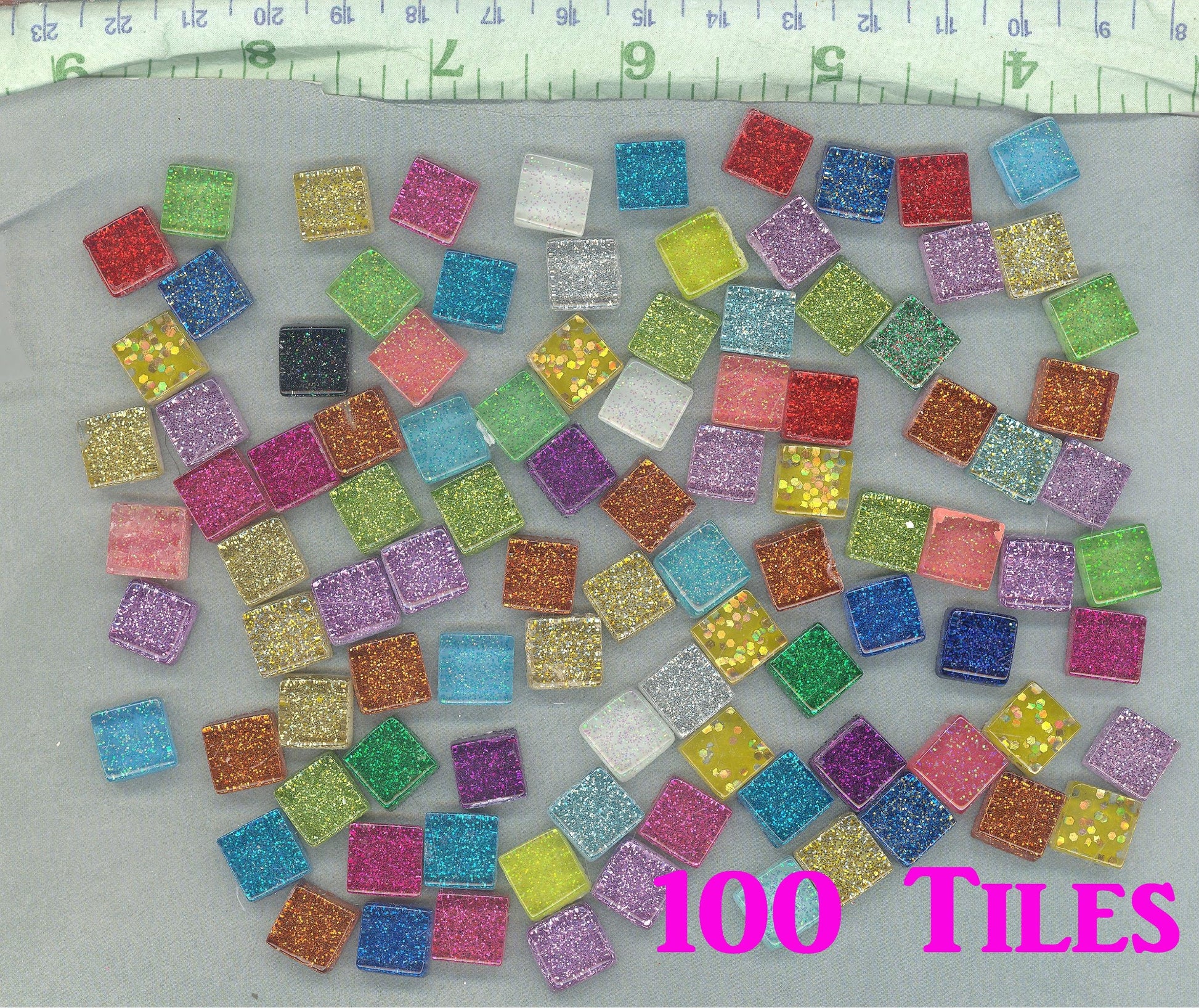 Glitter Tiles - 1 cm - Assorted Colors - 100g - Over 100 Glass Squares