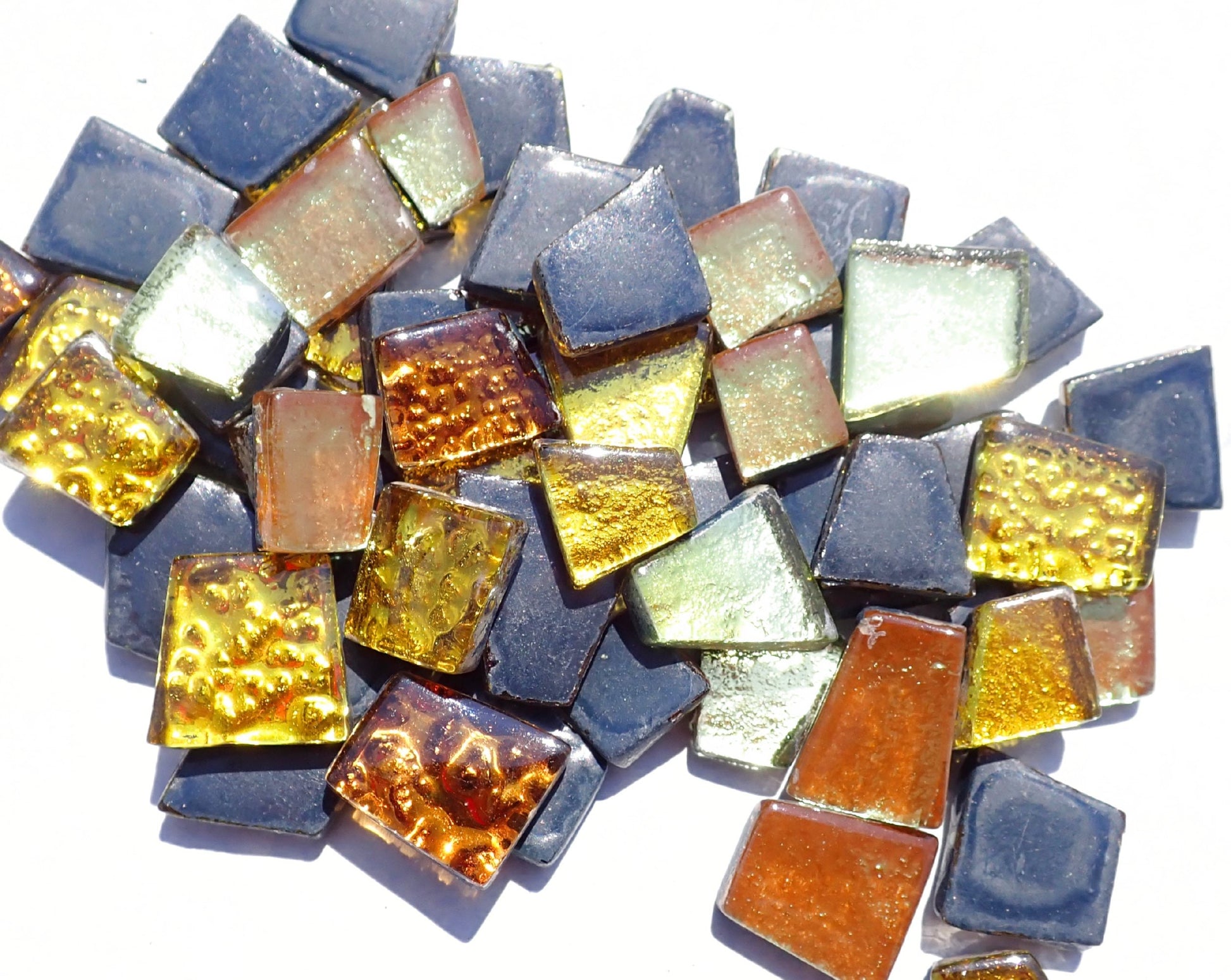 Gold and Bronze Glass Tiles in Assorted Shapes - 50 grams Metallic Foil Mosaic Pieces - Ganymede