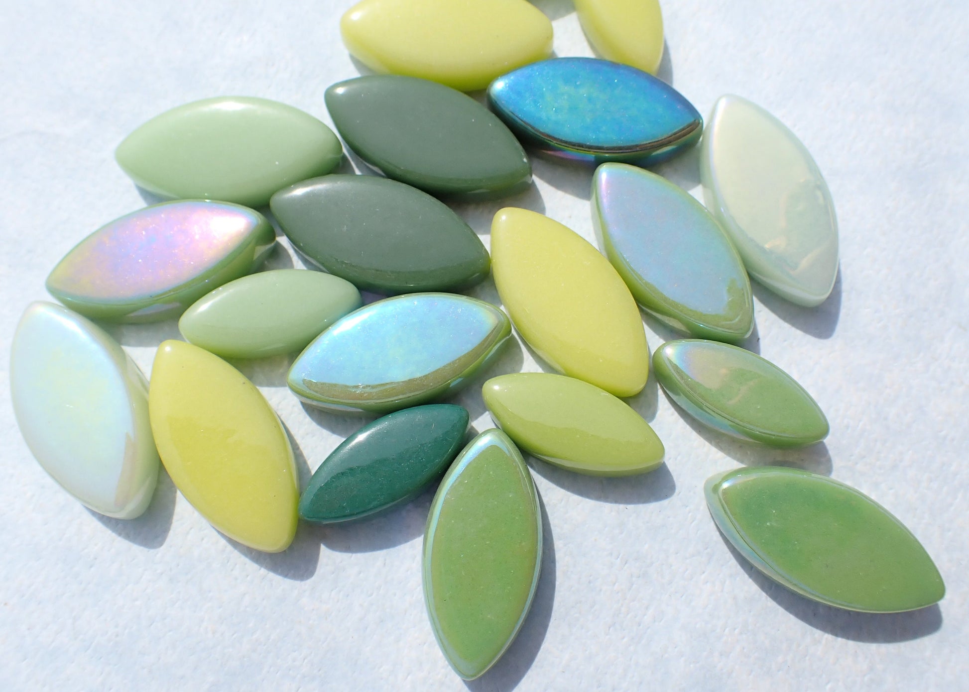 Green and Yellow Glass Leaves - 50g of Petals in 14mm and 19mm Mix of 2 Sizes - Lady's Mantle
