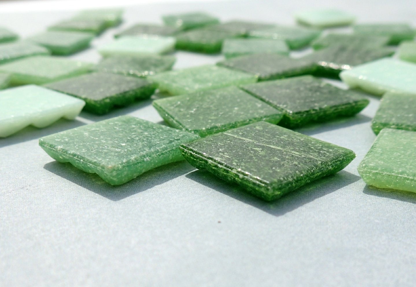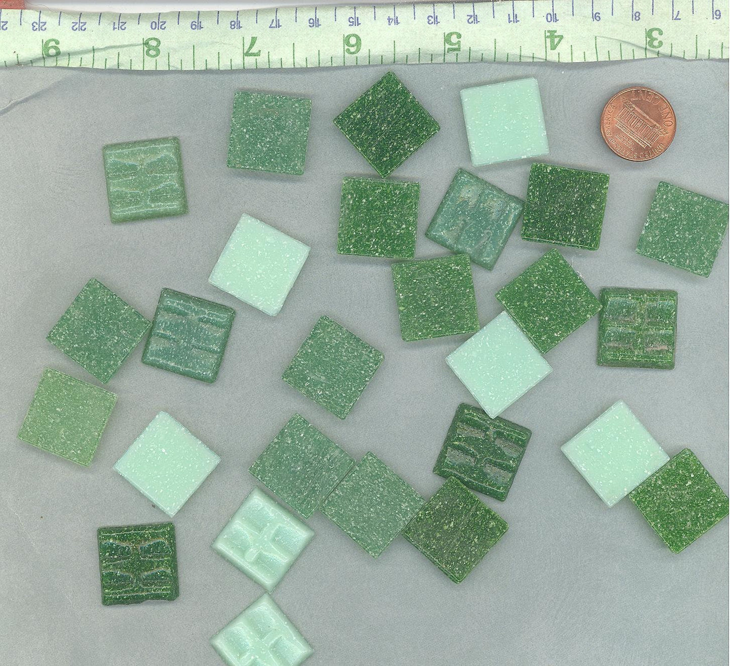 Green Mix Glass Mosaic Tiles Squares - 20mm - Half Pound of Vitreous Glass Tiles for Craft Projects in an Assortment of Greens