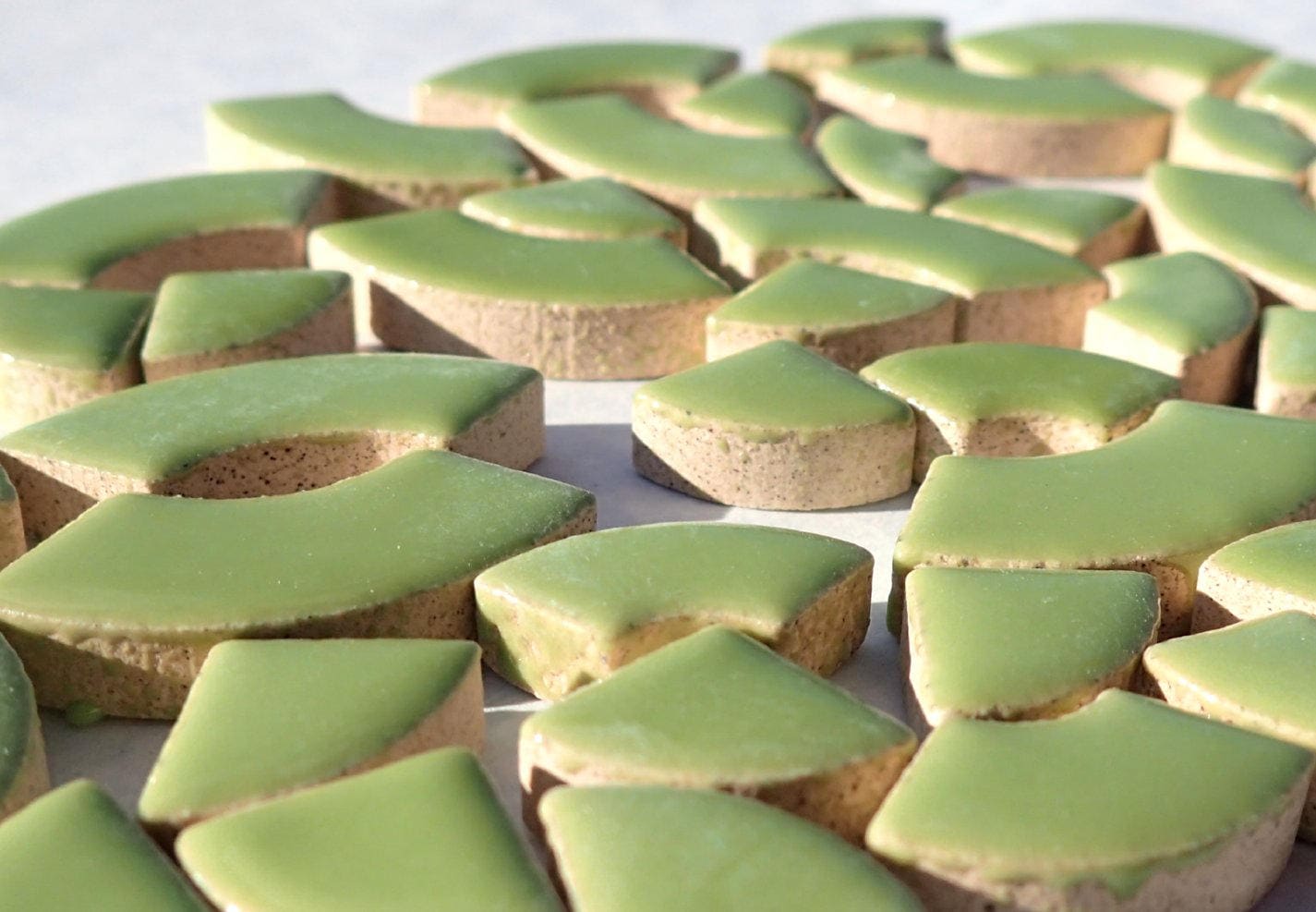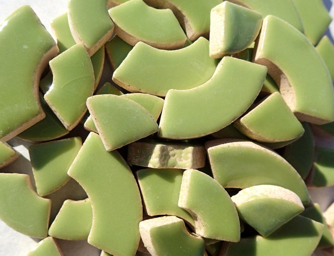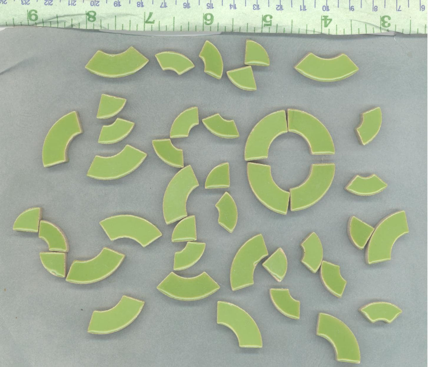 Kiwi Green Bullseye Mosaic Tiles - 50g Ceramic Circle Parts in Mix of 3 Sizes