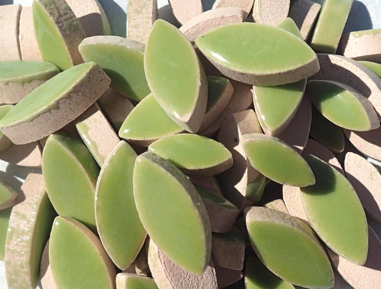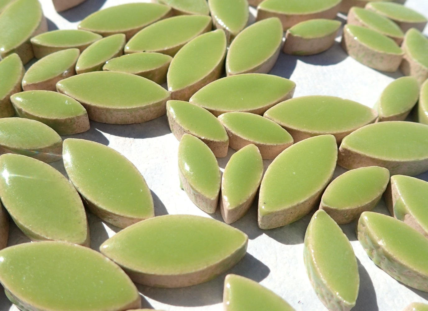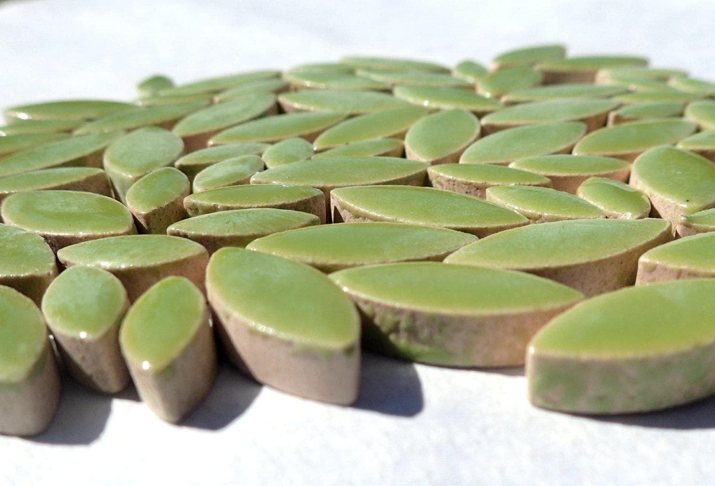 Kiwi Green Petals Mosaic Tiles - 50g Ceramic Leaves in Mix of 2 Sizes 1/2" and 3/4"