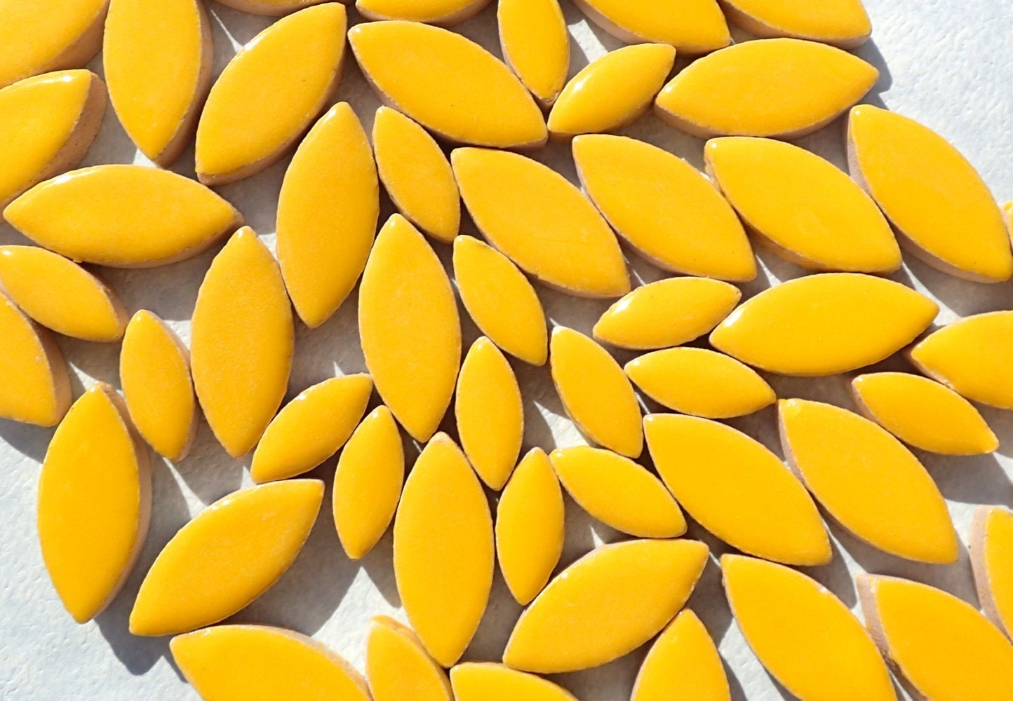 Lemon Yellow Petals Mosaic Tiles - 50g Ceramic Leaves in Mix of 2 Sizes 1/2" and 3/4"