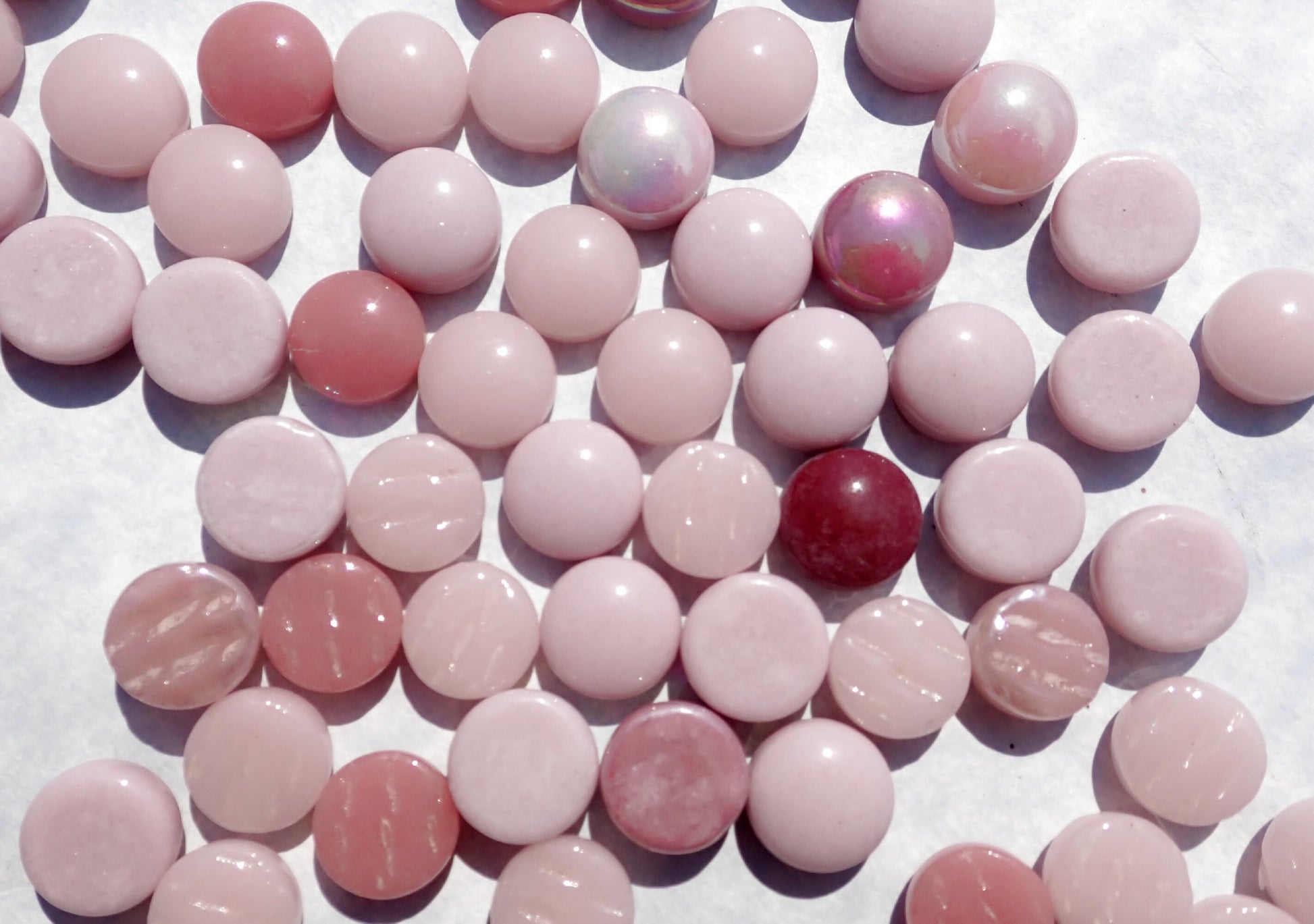Light Pink Mix Glass Drops Mosaic Tiles - 100 grams - Mix of Gloss and Iridescent 12mm Glass Gems - Over 60 Tiles
