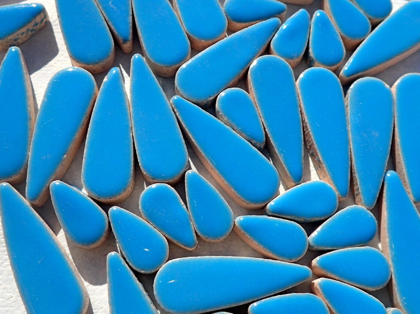 Mediterranean Blue Teardrop Mosaic Tiles - 50g Ceramic Petals in Mix of 2 Sizes 1/2" and 3/5" in Thalo Blue