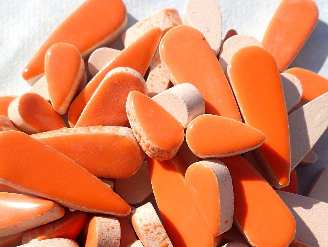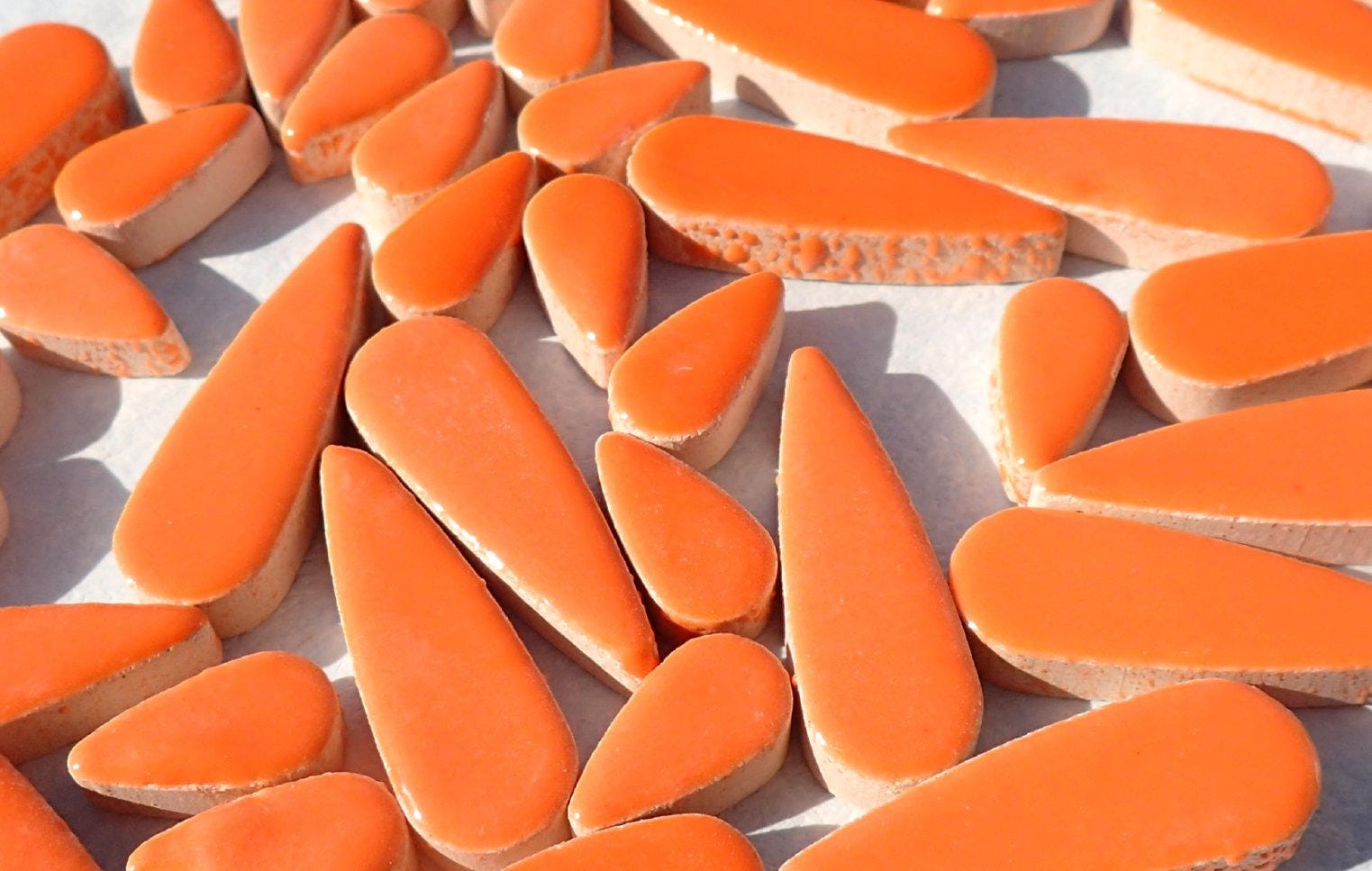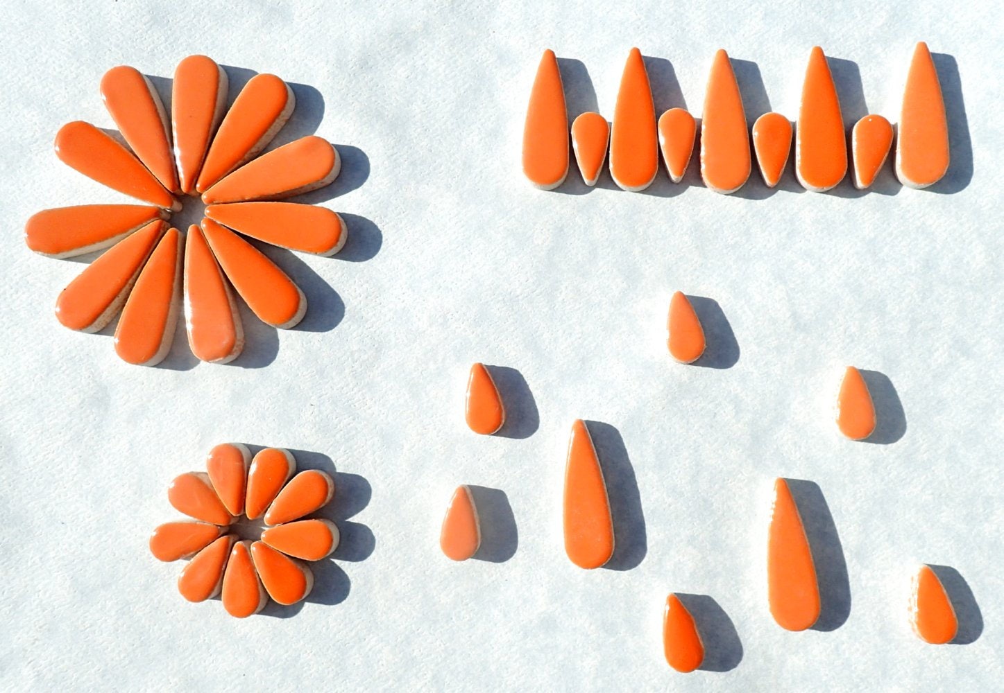 Orange Teardrop Mosaic Tiles - 50g Ceramic Petals in Mix of 2 Sizes 1/2" and 3/5"