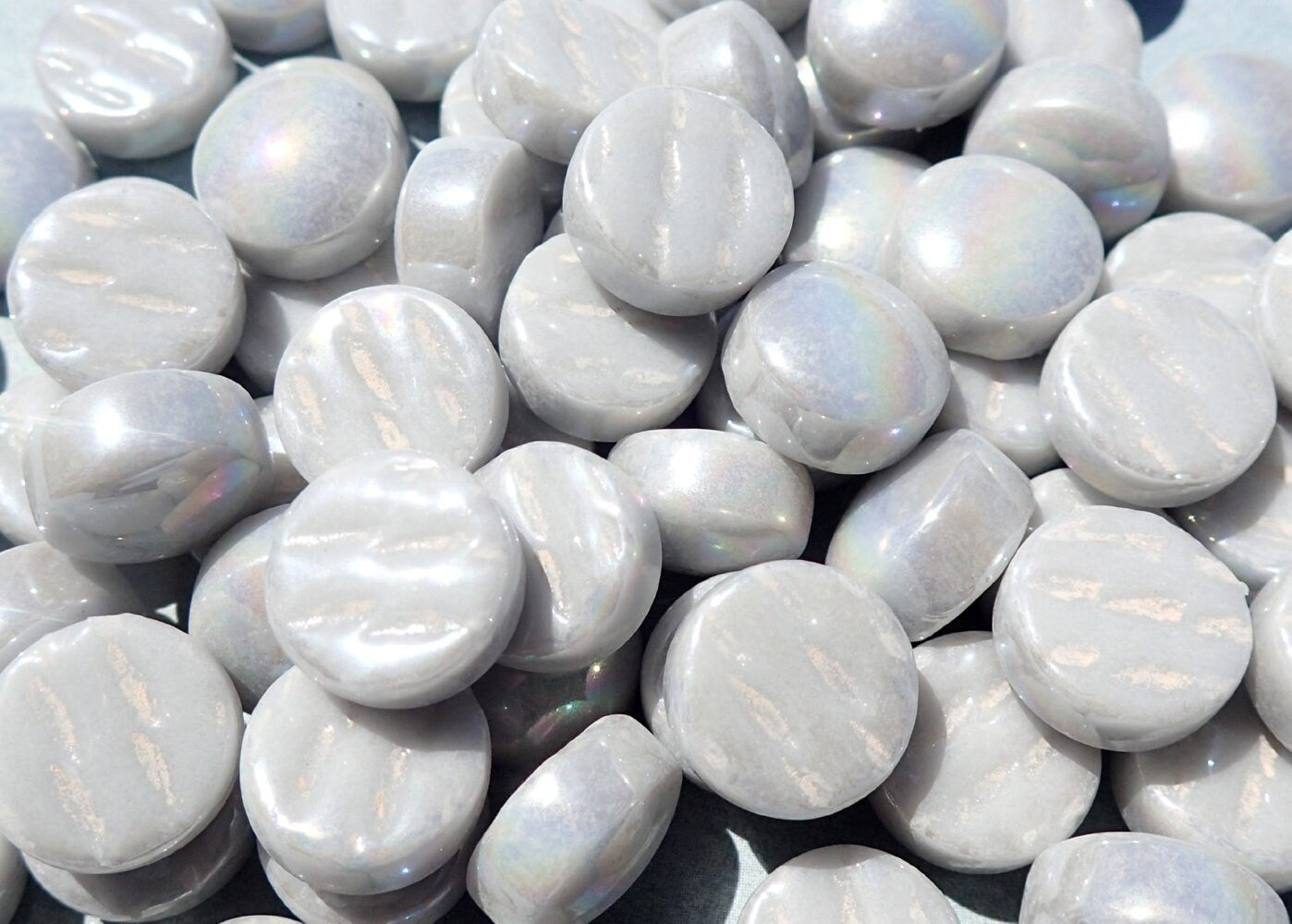 Pale Gray Iridescent 12mm Glass Gems - 100 grams - Over 60 Tiles