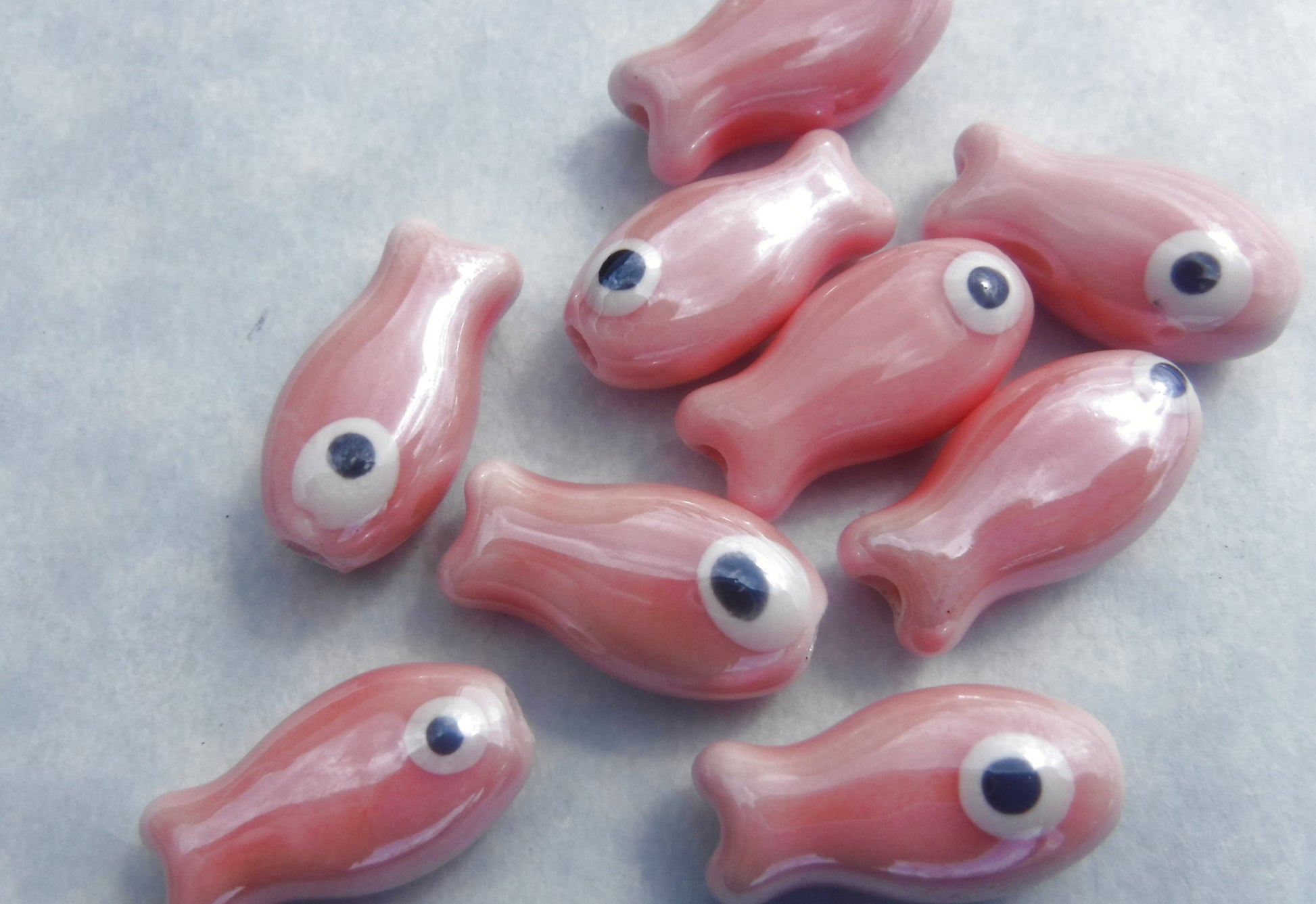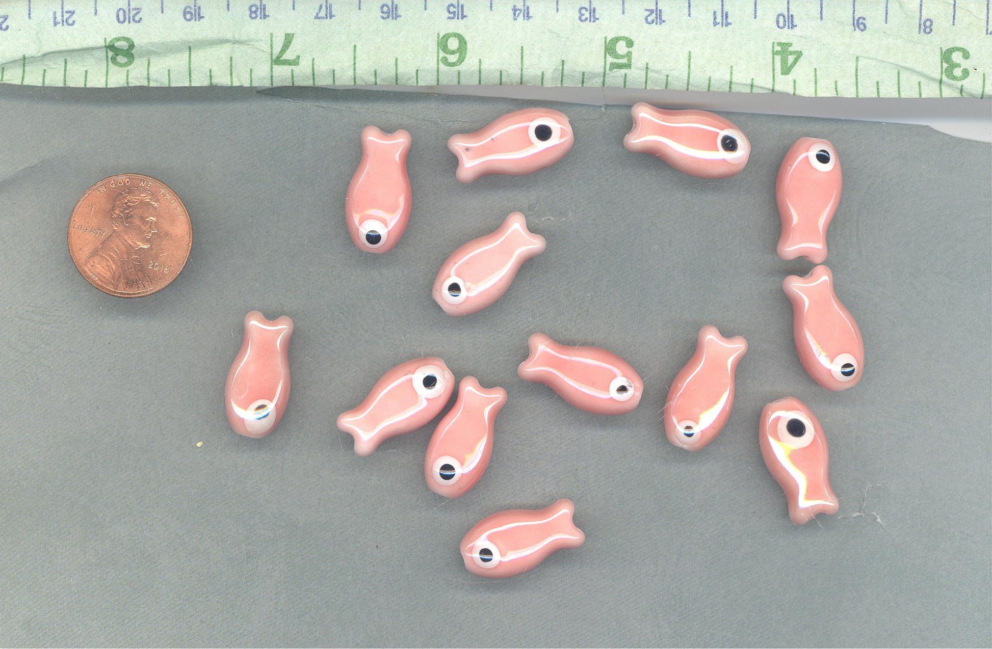 Peach Fish Beads - Ceramic Mosaic Tiles - Jewelry Supplies