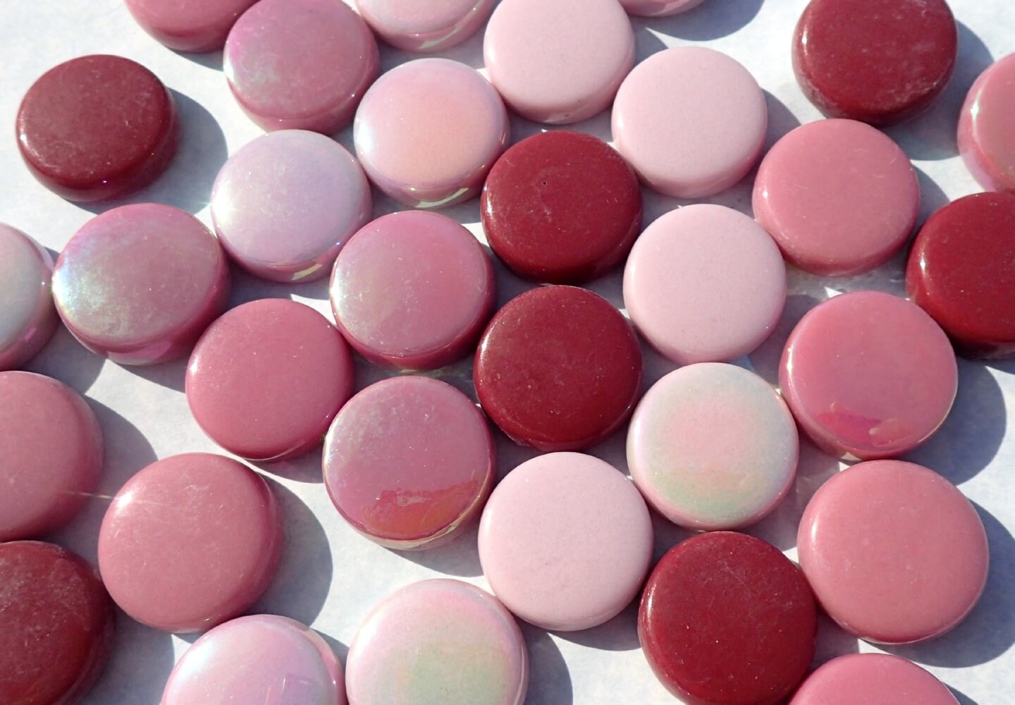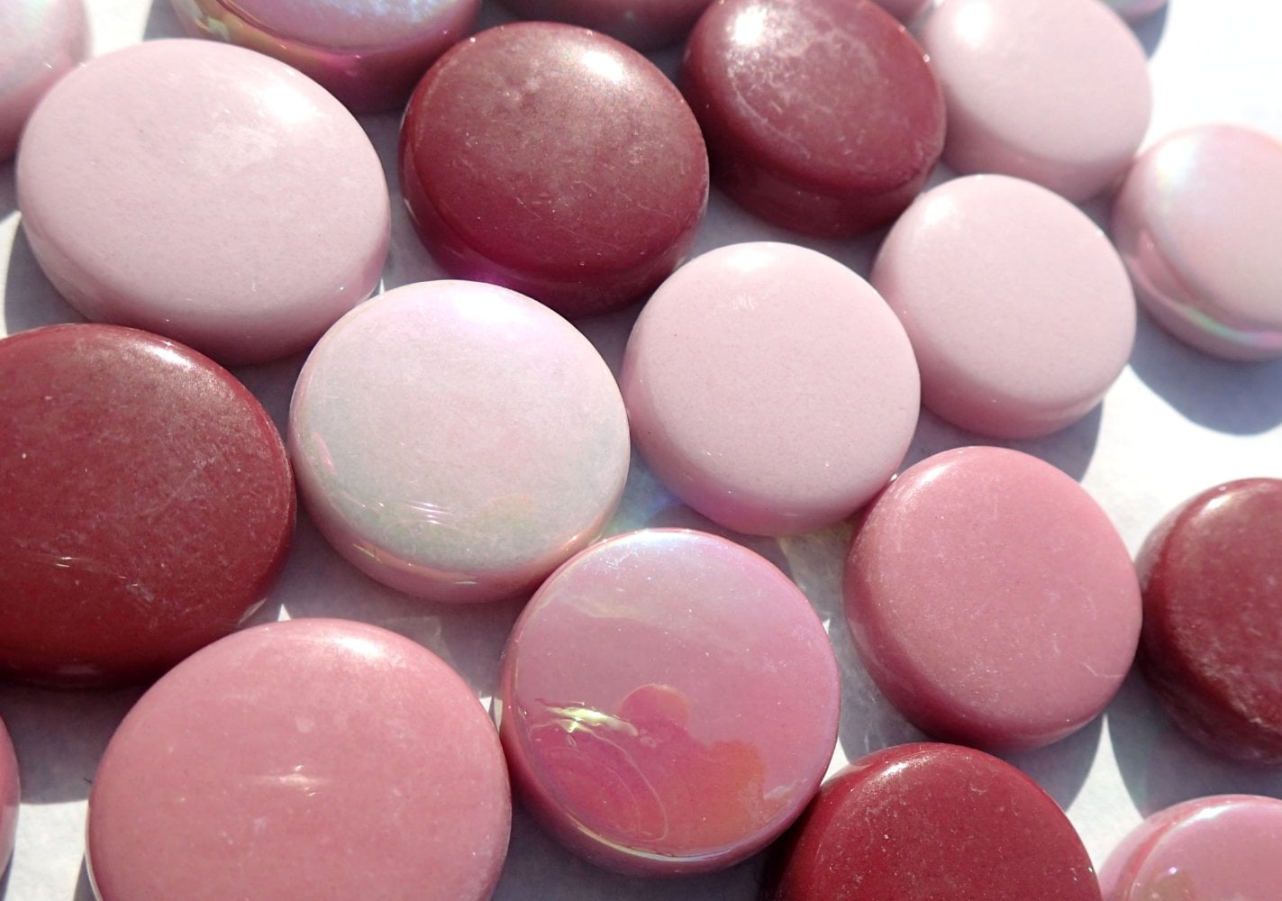 Pink Mix Large Glass Drops - 100 grams - 20mm Mix of Gloss and Iridescent Glass Gems - Approx 20 Tiles