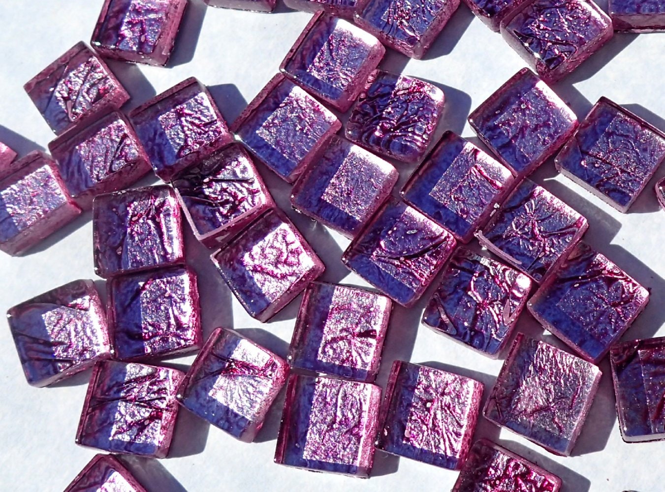 Purple Foil Square Crystal Tiles - 10mm - 50g Metallic Glass Tiles in Wisteria - Approx 50 Tiles
