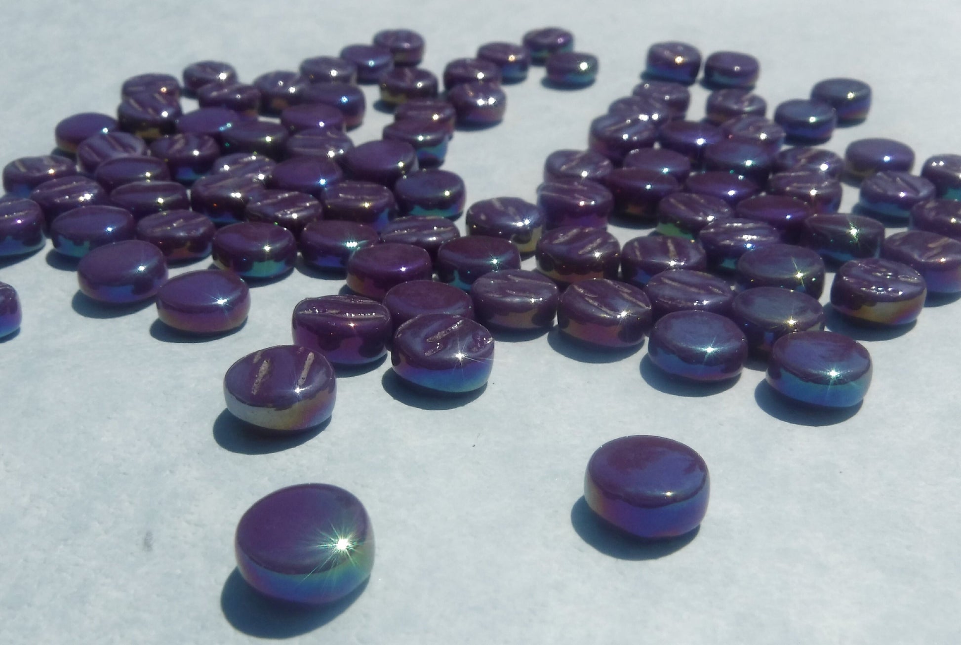 Purple Grape MINI Iridescent Glass Drops Mosaic Tiles - 50 grams - Over 100 Tiles