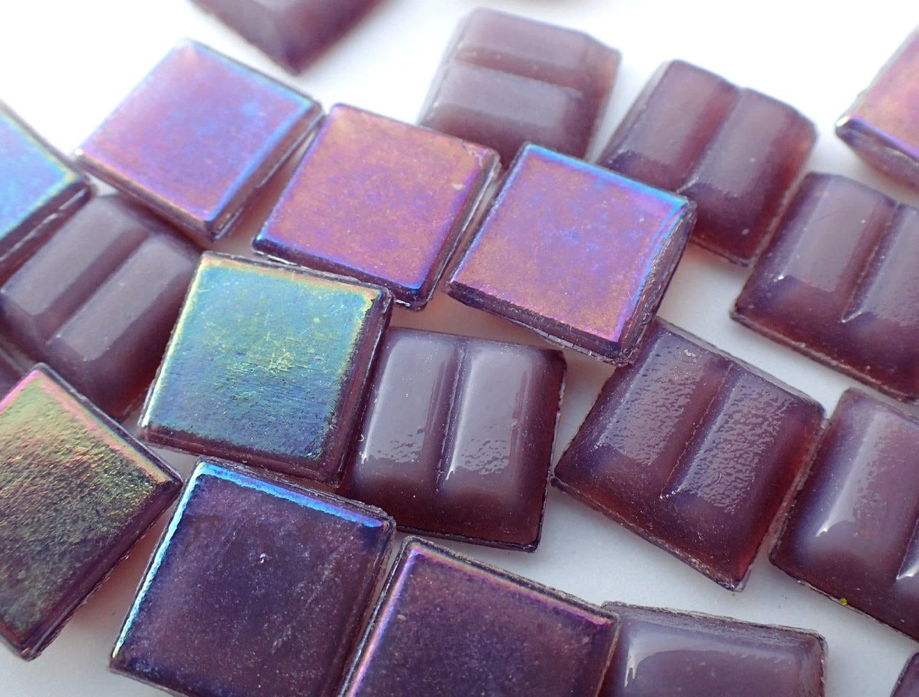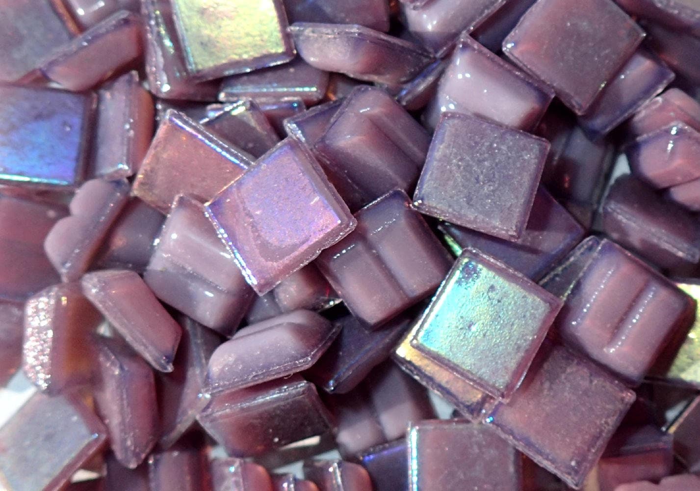 Purple Iridescent Venetian Glass Tiles - 1 cm - 100 grams - Approx 150 Squares