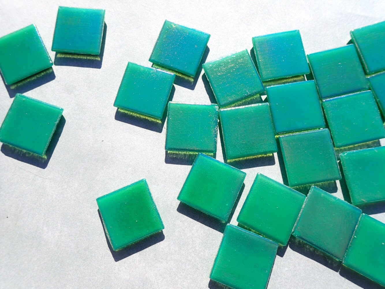 Rainforest Green Iridescent Venetian Glass Tiles - 20mm - 100 grams