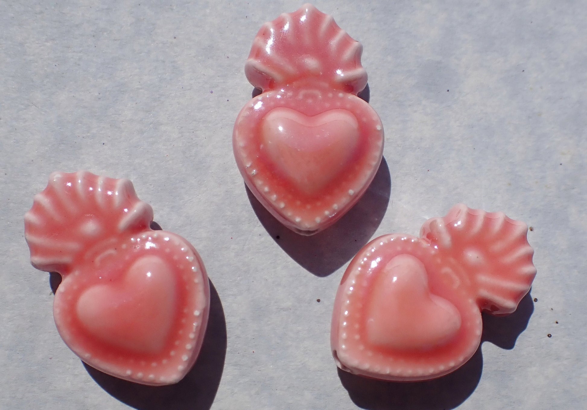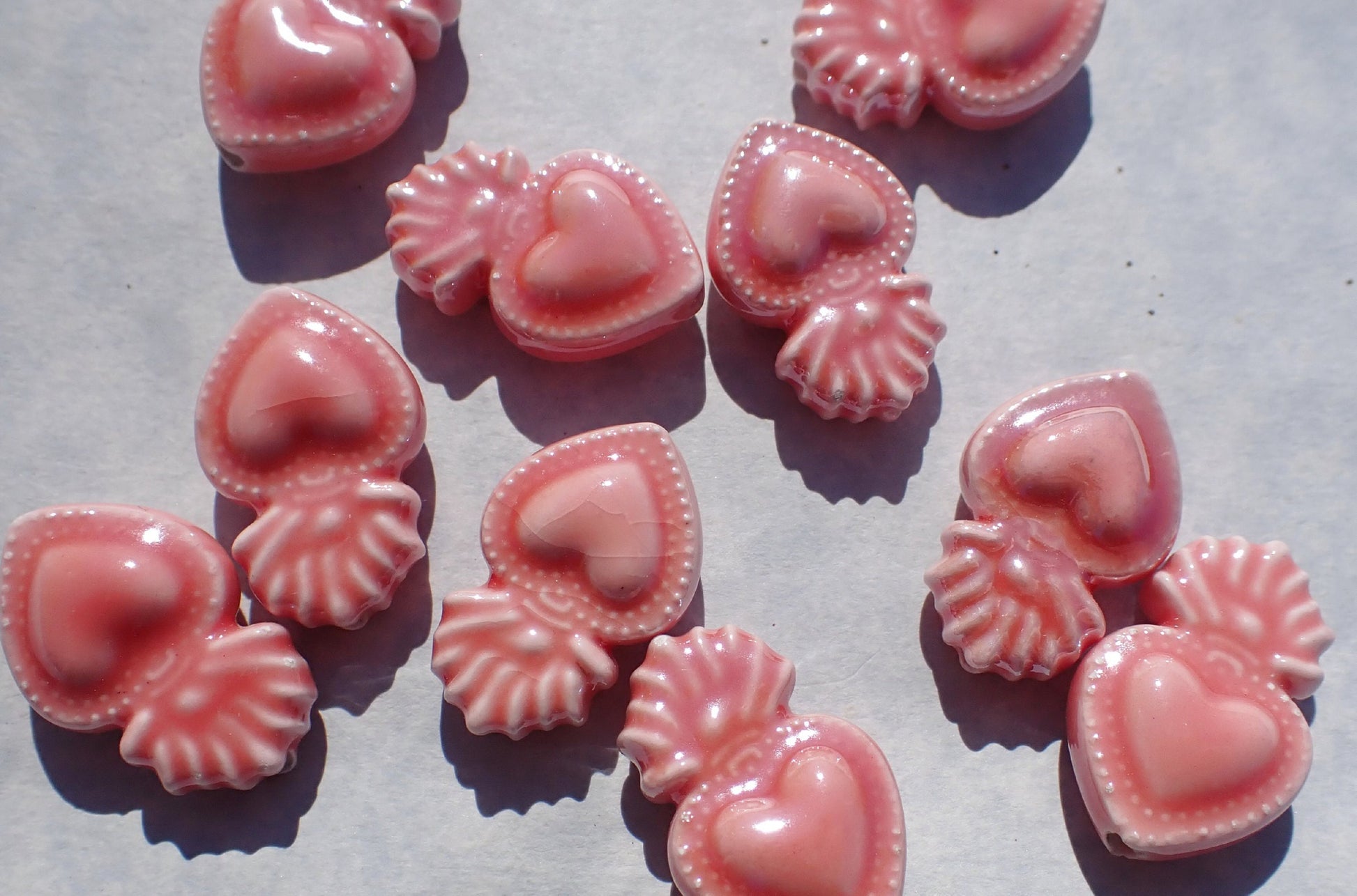Rose Pink Milagro Heart Beads - Ceramic Mosaic Tiles - Jewelry Supplies