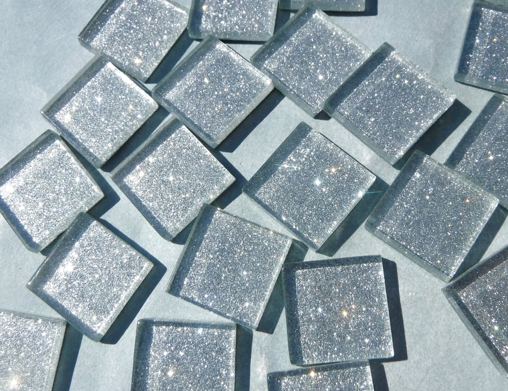 Silver Glitter Tiles - 20mm Mosaic Tiles - 25 Metallic Glass Tiles