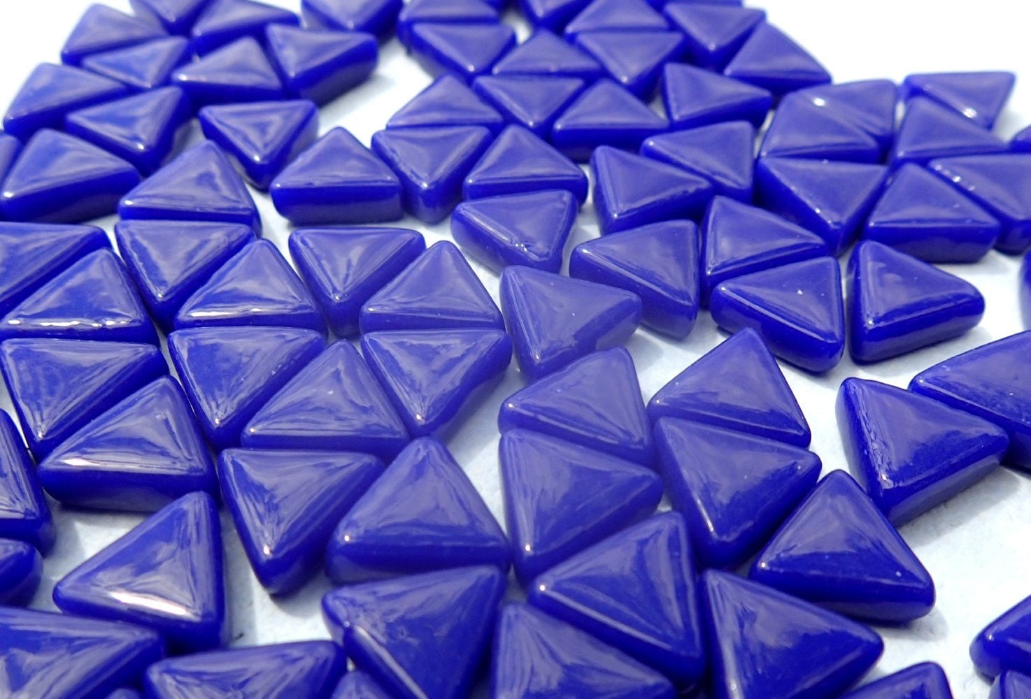 Small Blue Triangle Glass Mosaic Tiles - 10mm - Opaque Glass Solid Color - 50g of Triangles in Royal Blue