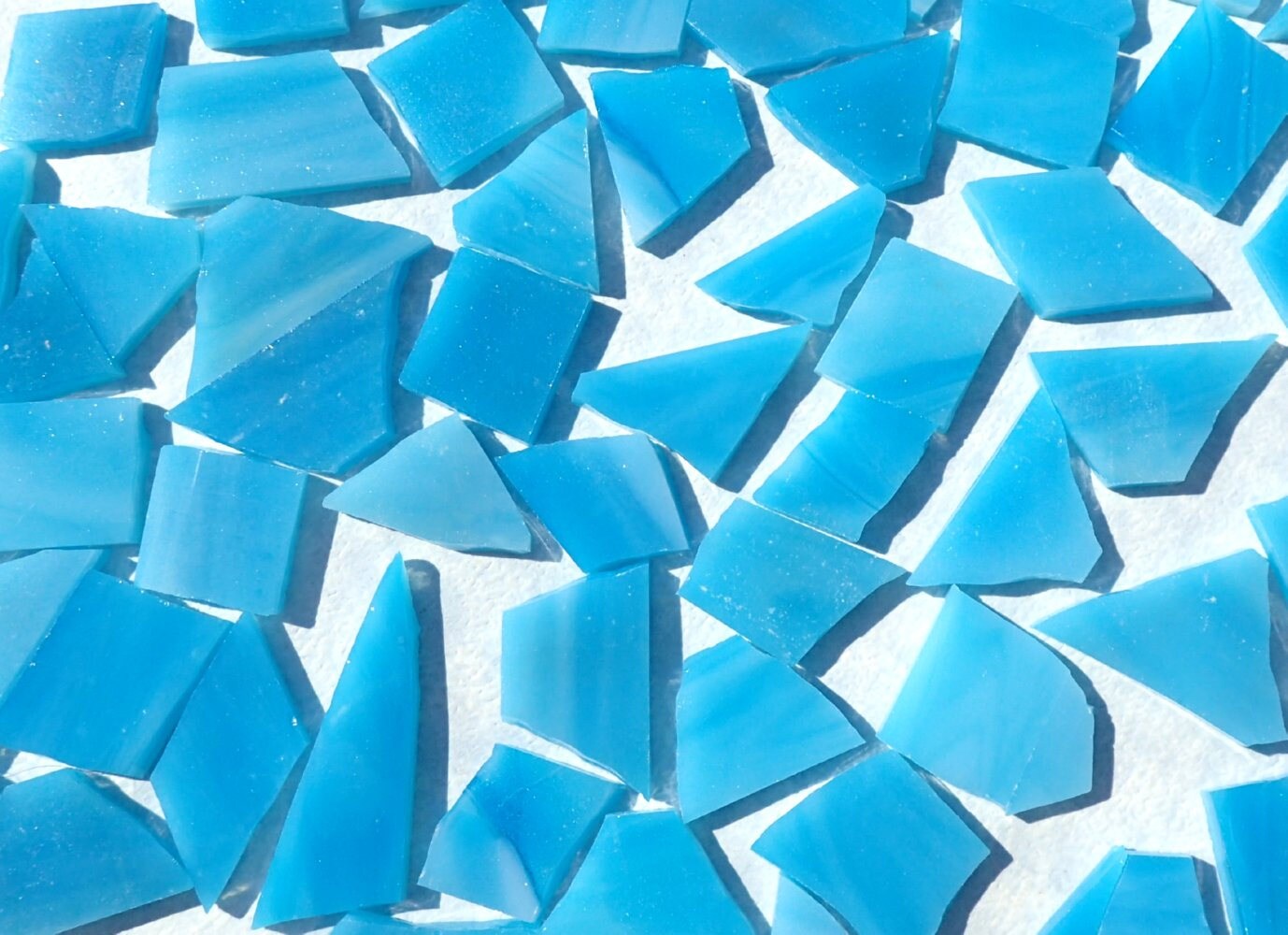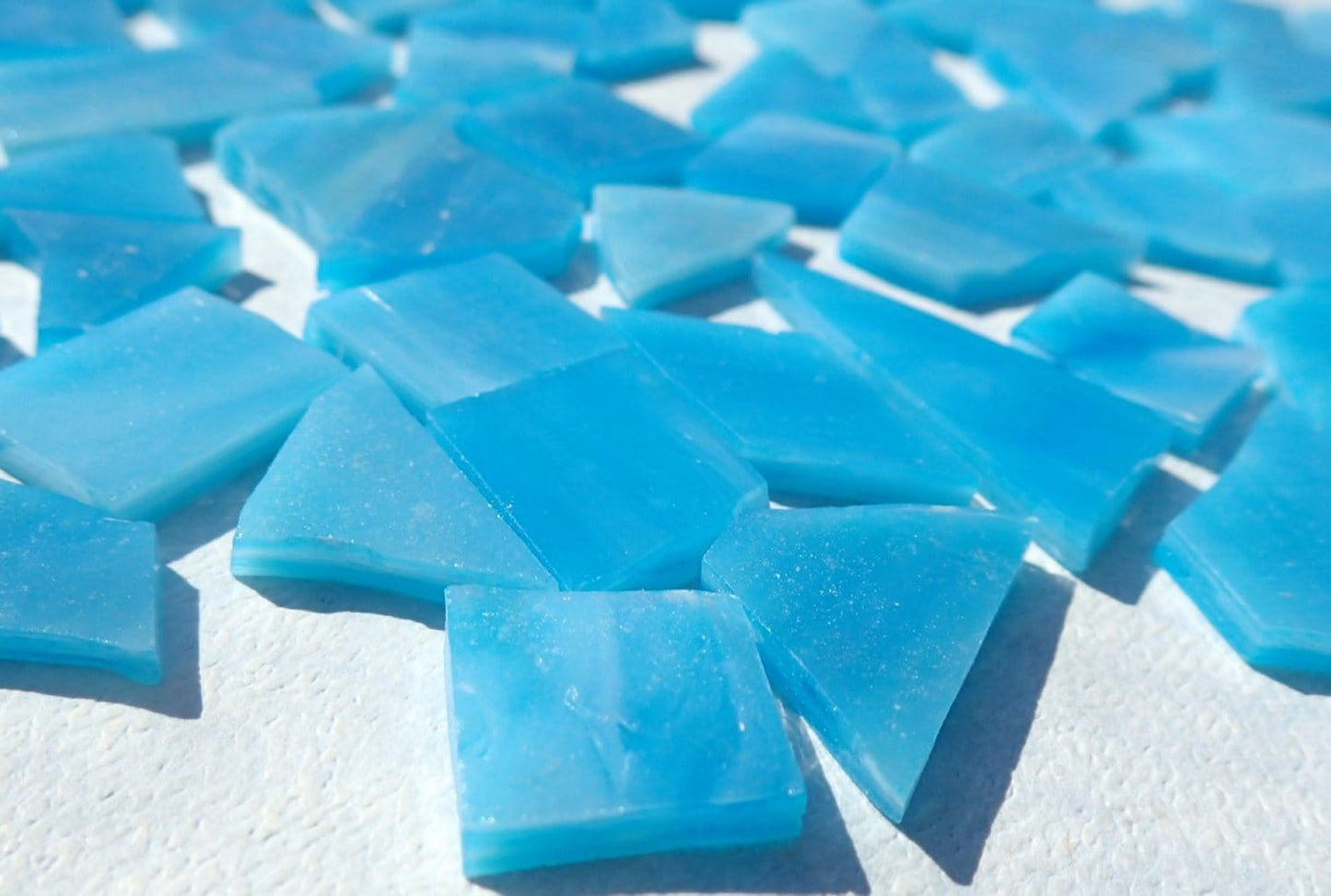 Stained Glass Mosaic Tiles in Caribbean Blue - 1/2 Pound - Tropical Blue Glass Tiles