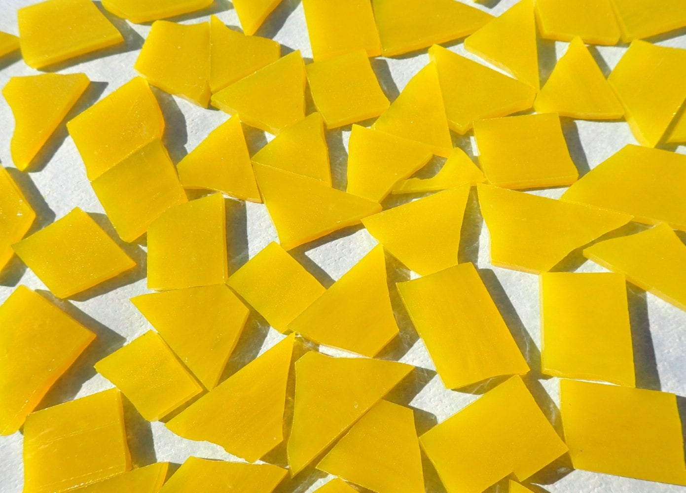 Stained Glass Mosaic Tiles in Sunshine Yellow - 1/2 Pound - 5-15 mm Various Shapes