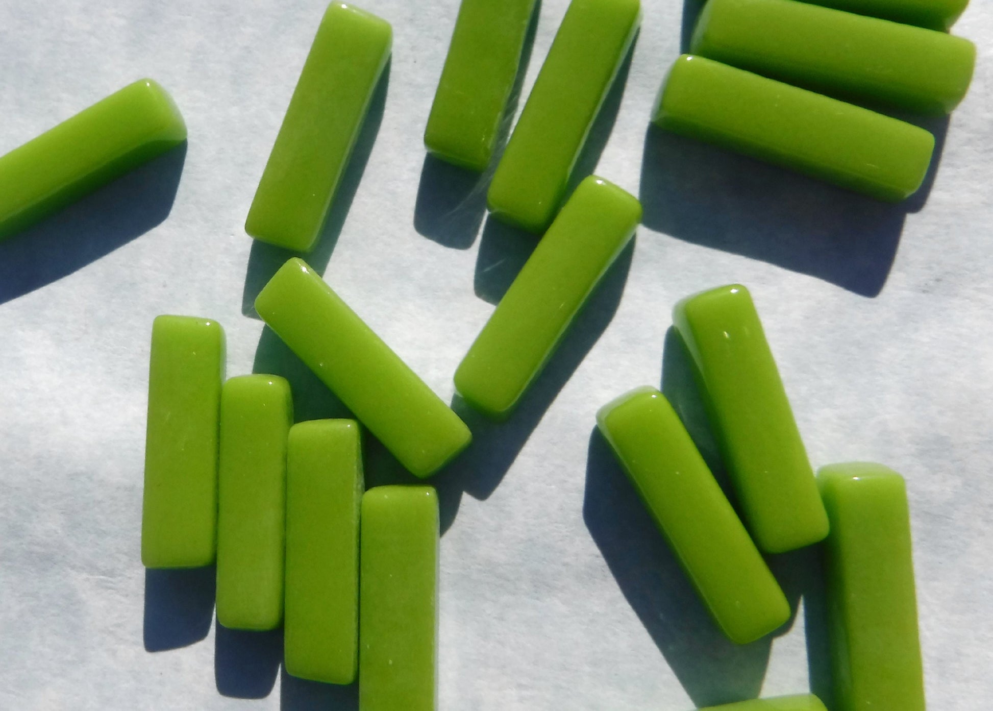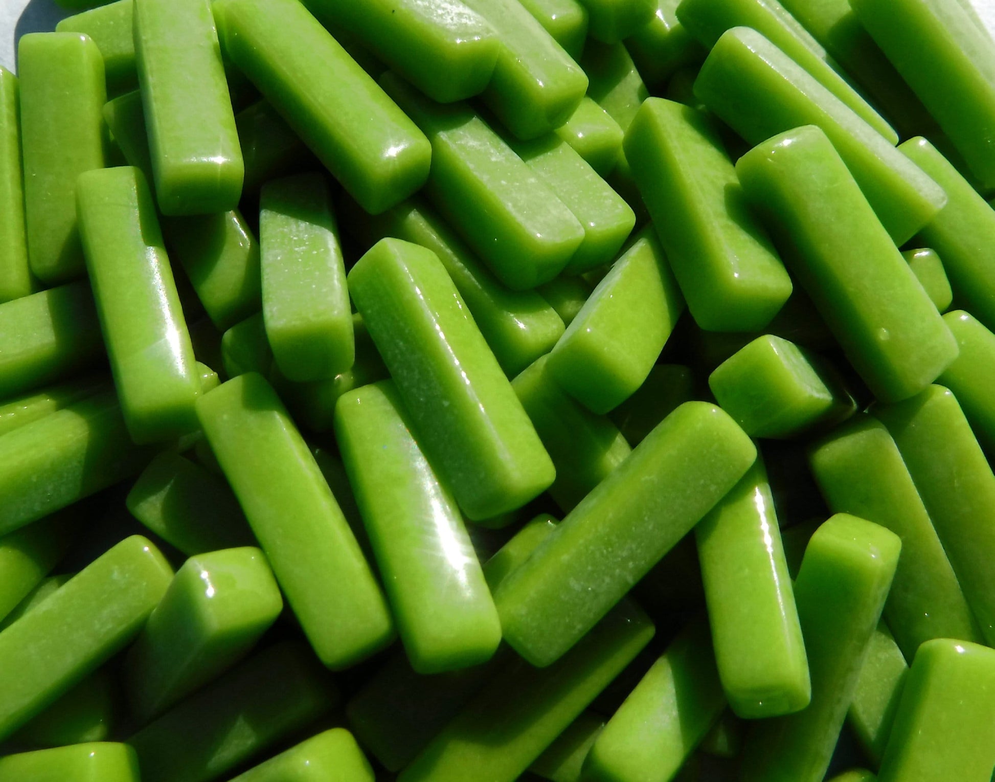 Vivid Lime Rectangle Mosaic Tiles - 20mm Sticks - 50g Glass Bar Tiles