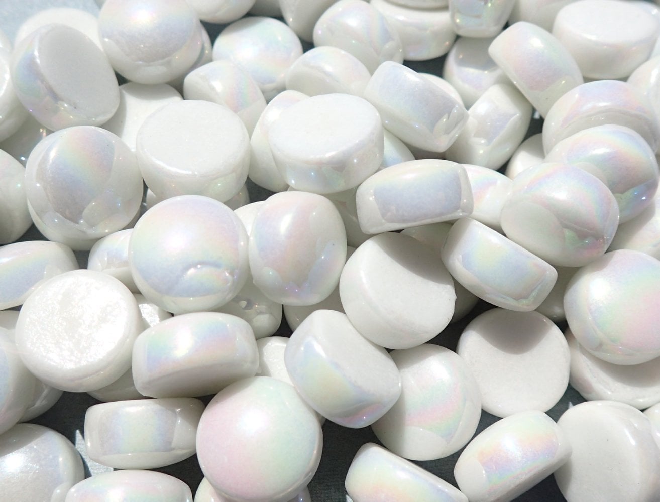 White Iridescent Glass Drops Mosaic Tiles - 12mm - 100 grams