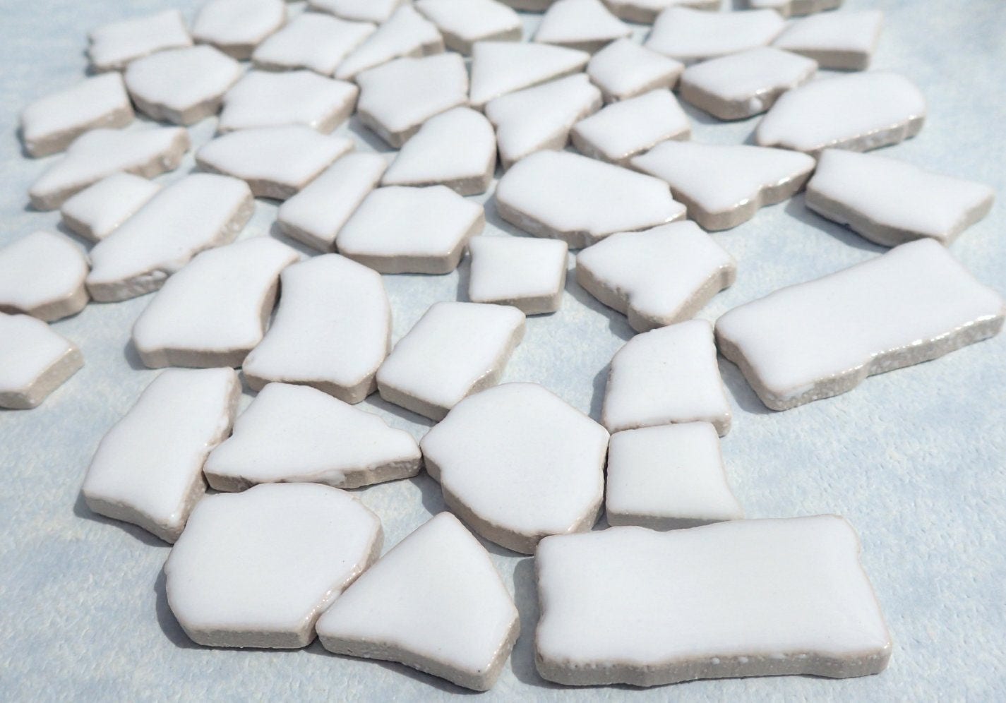 White Mosaic Ceramic Tiles - Random Shapes - Half Pound - Assorted Sizes Jigsaw Puzzle Type Pieces