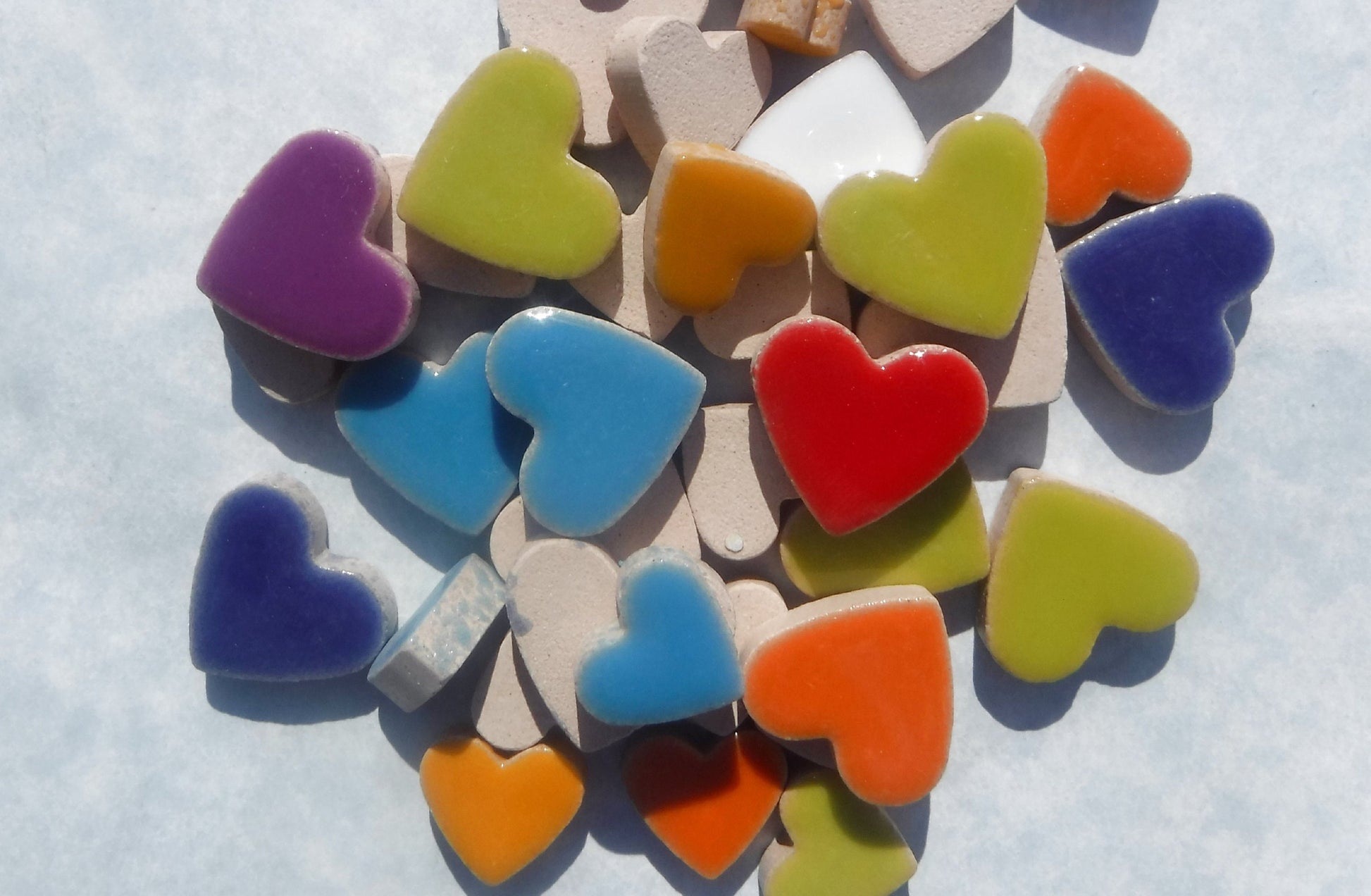 Wild at Heart Mix - Assorted Colors of Ceramic Heart Mosaic Tiles - 50g